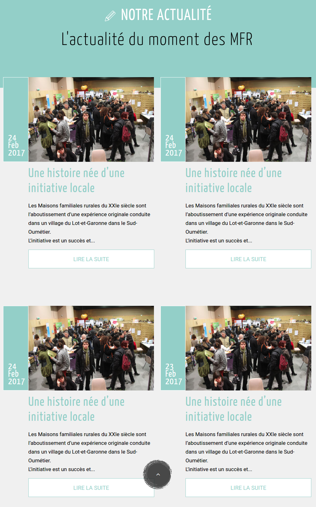 L'affichage de la page d'actualités comporte 4 actualités par défaut. Vous pouvez choisir d'en afficher plus ou moins en fonction de la fréquence de vos publications.